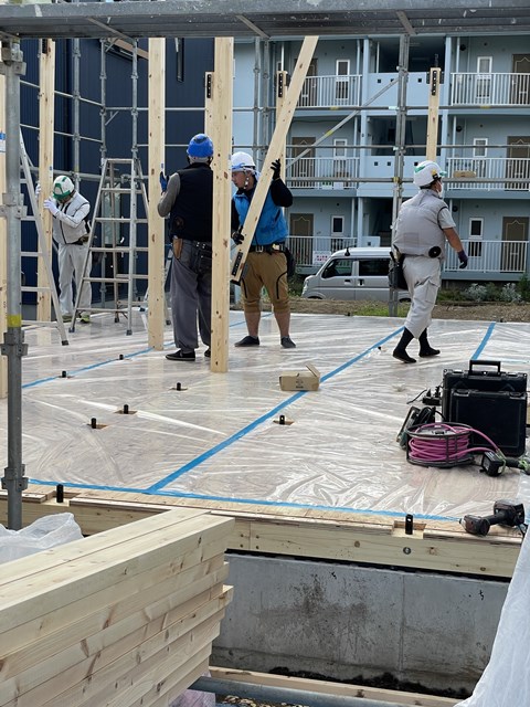 材料の荷受けは足場と上棟システムのB社が行うんですが