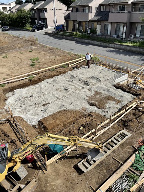 I様邸の基礎工事、Fさんが汗だくでメッチャ頑張ってます👍