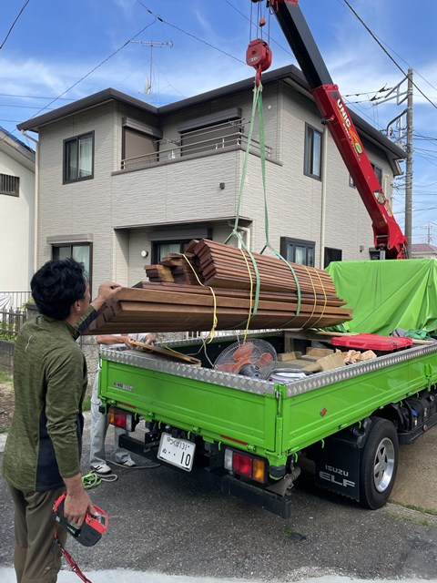 荷下ろし何で一瞬ですよ。しかもハードウッド(何もしなくても耐久性が強いデッキ材)はメチャメチャ重いのよ、、、
