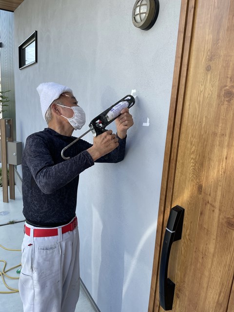 コーキング。A様邸は屋根かぶってますけど、風で雨が吹き込んできたりしますからねー。
