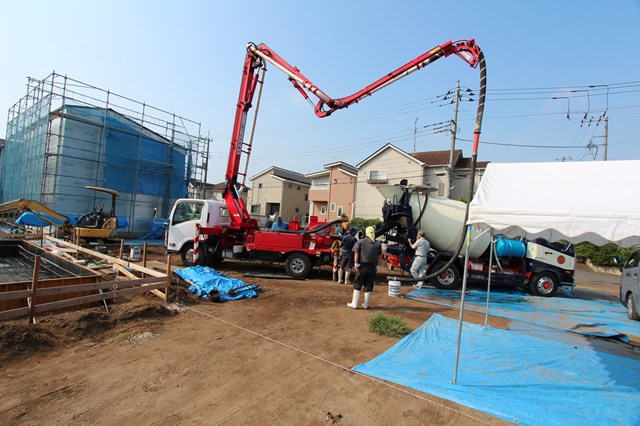 お隣のI様邸では今日生コン打設みたい。