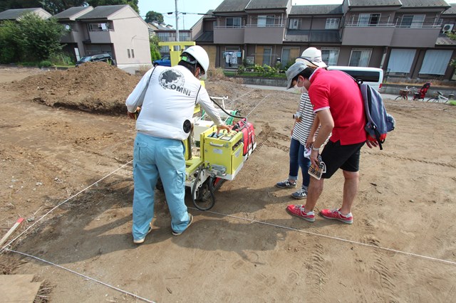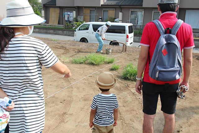 N様と地盤調査の立ち合い中~地鎮祭の日程など打ち合わせして