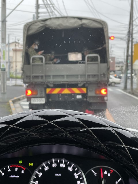 帰り道、自衛隊トラックと遭遇。
