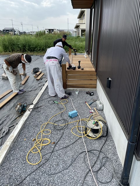 今日はデッキ工事をしておりますぅ~。1日で終わらせますぅ~♪