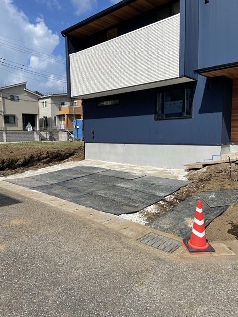 明日お引越しのS様邸~。綺麗に砕石と🚚マットが敷かれてバッチリですね👌
