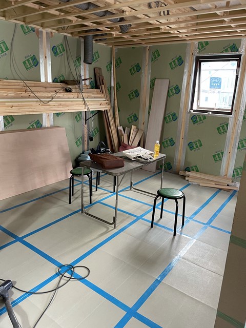 この貼り分けラインもメッチャこだわって決めたのよ!今見せても足場が邪魔でわかり難いので