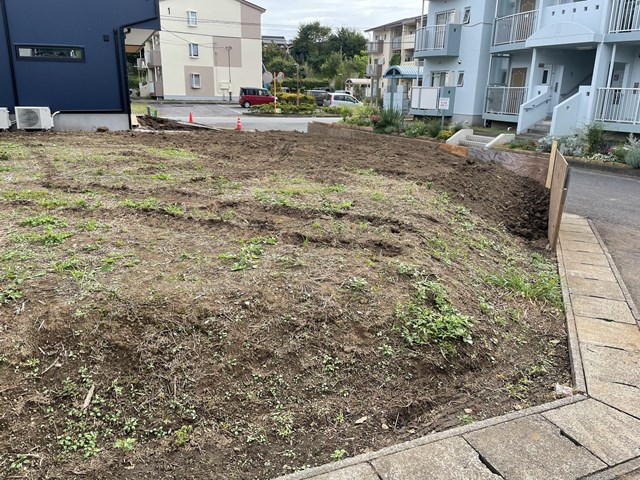 法面になっていたところを盛り土して、杭を真直ぐ打てるようにしたのよ!