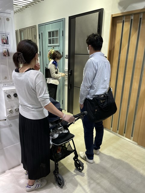 玄関ドアコーナー。品川まで来ると全種揃っているので実物を見て決めれます👍