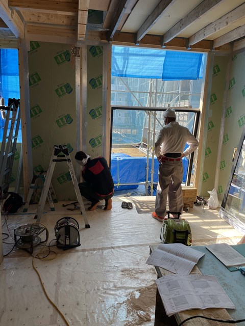 現場着くとY君がOさん監修のもと気密テープ張に集中!