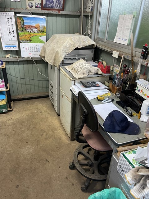 工場裏の事務所にいるっているっていうので、工場の脇を通ってー