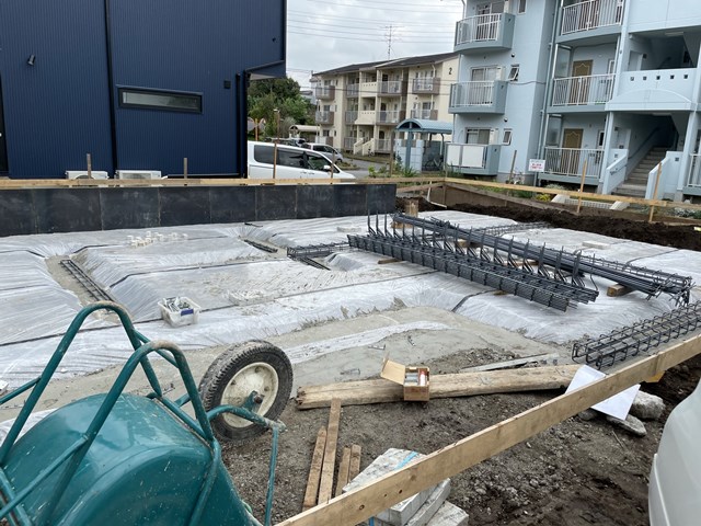 隣H様邸は、基礎Fさんが汗だくになって鉄筋の準備に取り掛かってます~