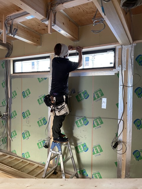 担当の大工Bさんは、明日の上棟がよりスムーズに行くためにある部材を準備。