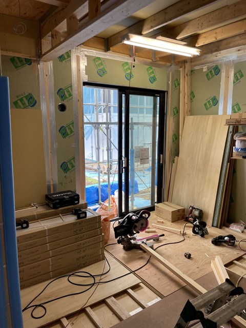 床がボコボコしてるでしょ?!コレは床暖の下地になりますぅ~。