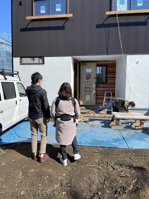 最後にタイルの色決めで外で打ち合わせしてる時に
