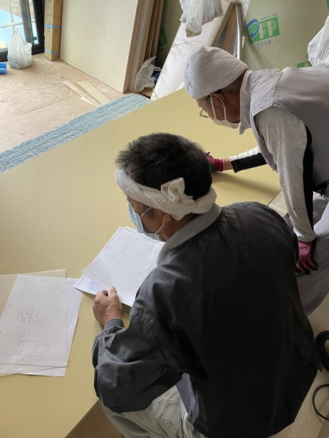 この床に留める足の位置で大工Bさんからプレゼンがw