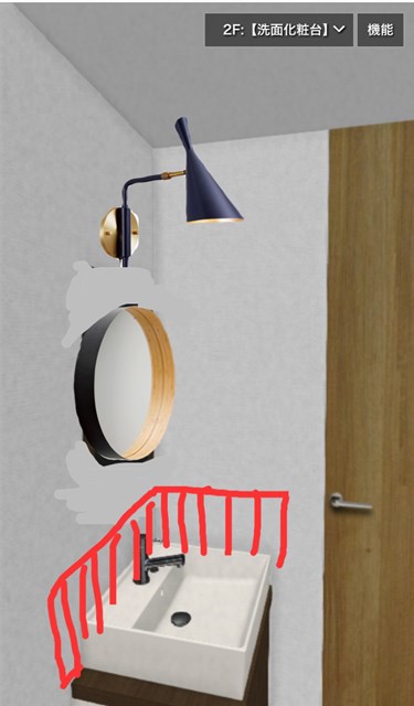 ご希望の照明と鏡画像を貼り付けて、タイルを張りたい範囲のイメージを書きたいして