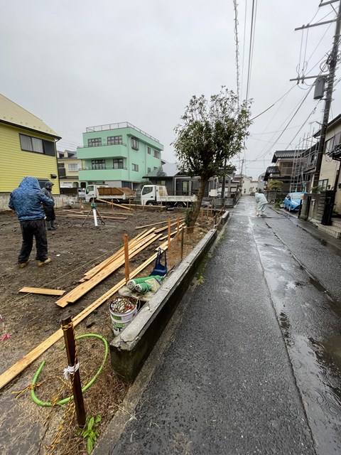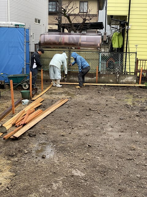 カントクゥ~と基礎Fさんで境界杭からの配置を確認👀