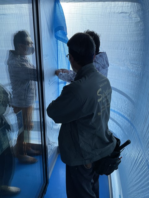 背中を向けてるのは、チームSELECTの左官職人Aさん✨
