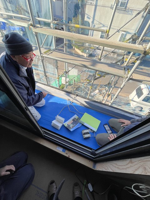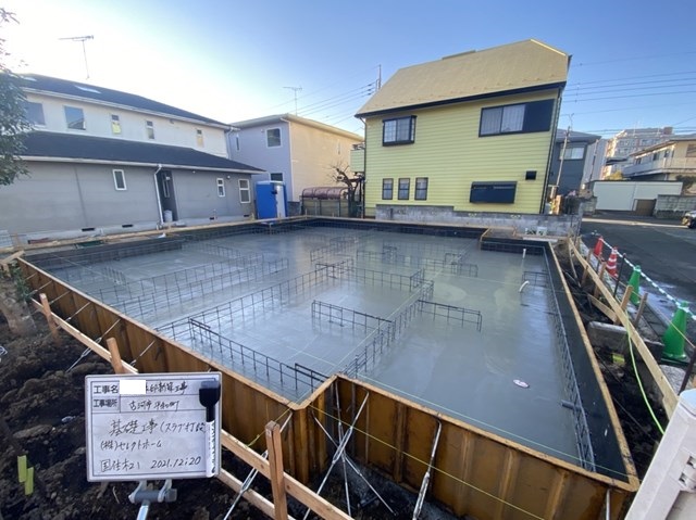 敷地いっぱいに設計しているので、ポンプ車を道路に配置して打設なので交通誘導員役っていうところかしら🤭