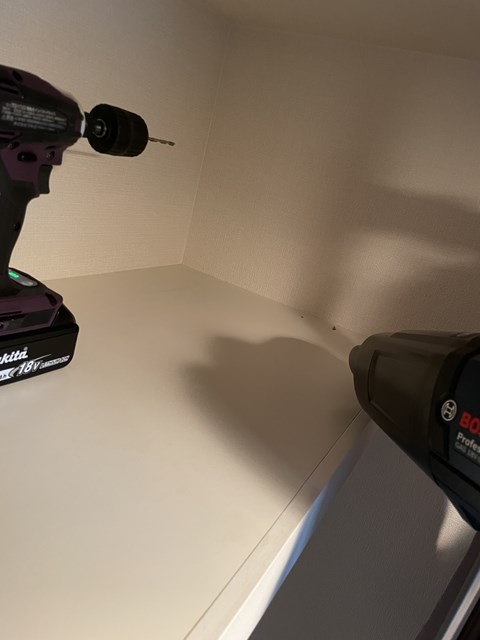 でも大工Yさんから、枕棚をキリで穴を空けてナットでつなげば強いっしょ!というグッとなアドバイスをいただいたので