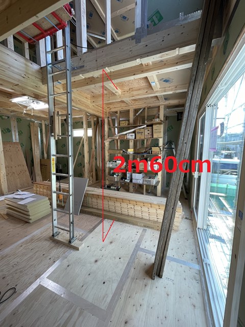 コチラは何の高さかと言いますと、吹き抜けに設置する照明の高さです☝