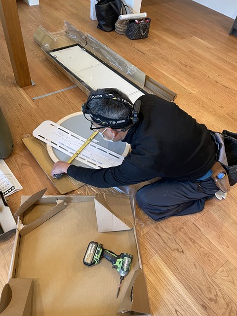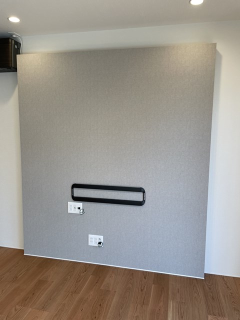 お引き渡し式が終わると、D様にご用意いただいた壁掛けTV用のステイ付け。