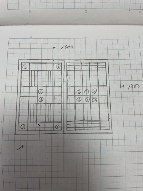 ①②のところにS様がイメージしている組子を入れた感じで書いて🍊(ミカン)