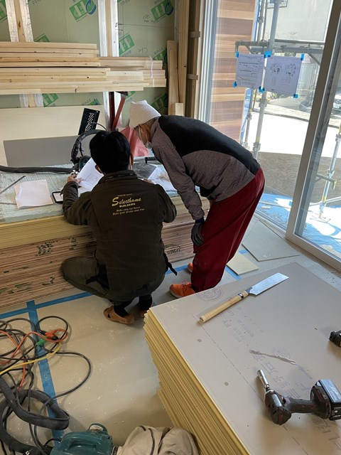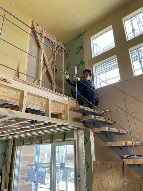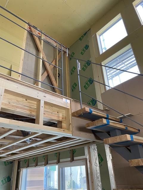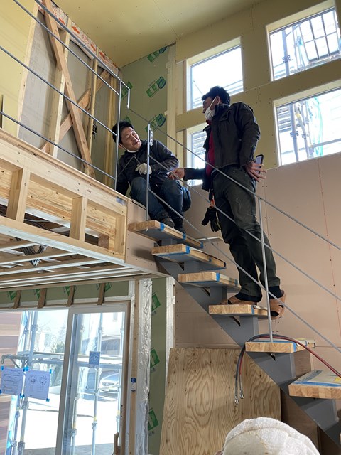 角度が違うから吹抜けの手摺ラインと合わないと説明を受けどっちに合わせる?ってYさんから聞かれて👂