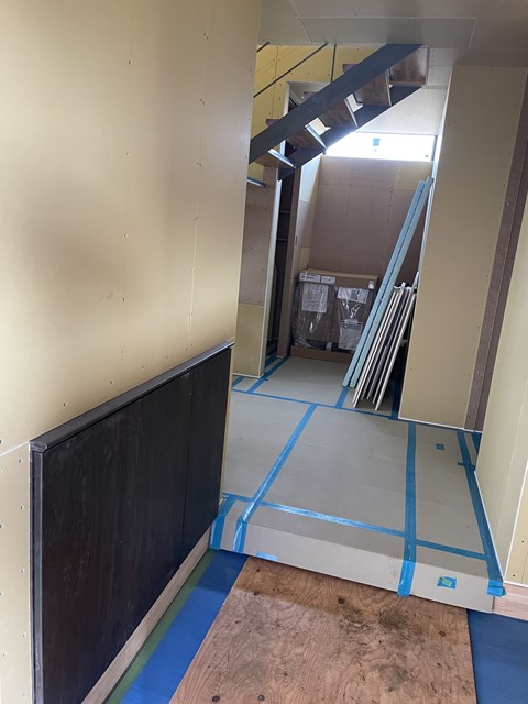 大工Yさんがちょうど玄関巾木を付けてた👀