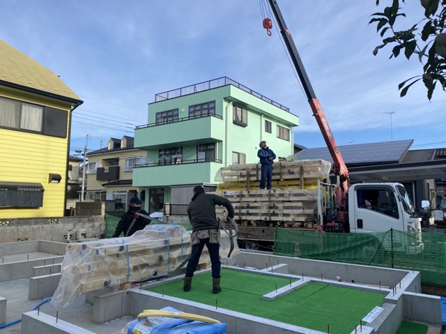 本日から古河市W様邸大工工事開始!で土台搬入~