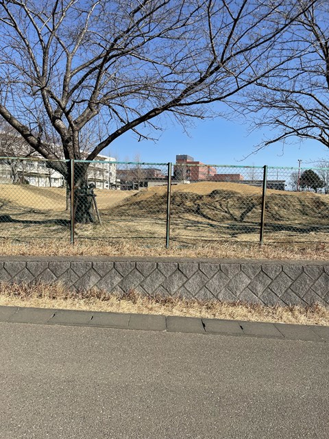 道路挟んだ向かいは小学校のグランドで、コレ桜の木だわ!