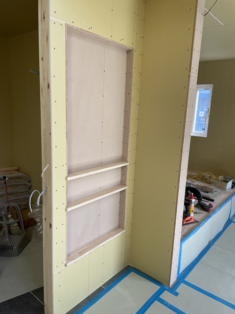 モニターニッチが出来てるわー。ココに黒板塗料を塗って・・・(∀`*ゞ)エヘヘ