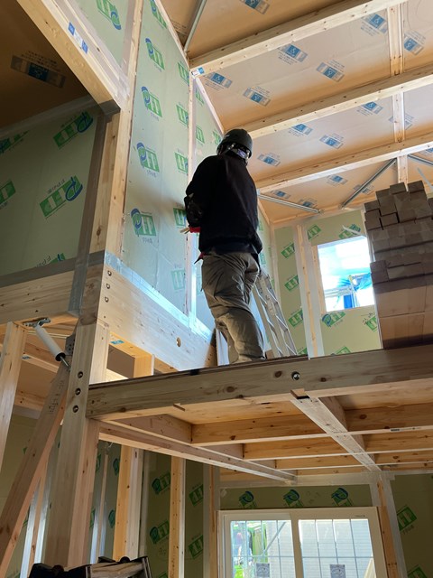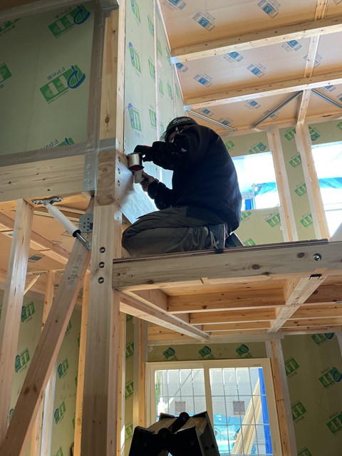 気密テープ張。Kさん直伝でヘラを使いながら張ってて、バッチリ👌お上手👏