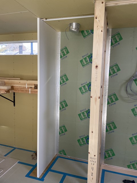 ココはパントリーの造作部なんですけどね、この仕切り板のやり方や