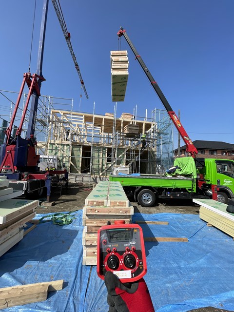 W様邸の上棟の時に、ユニックのワイヤーがバッククラッシュしちゃって