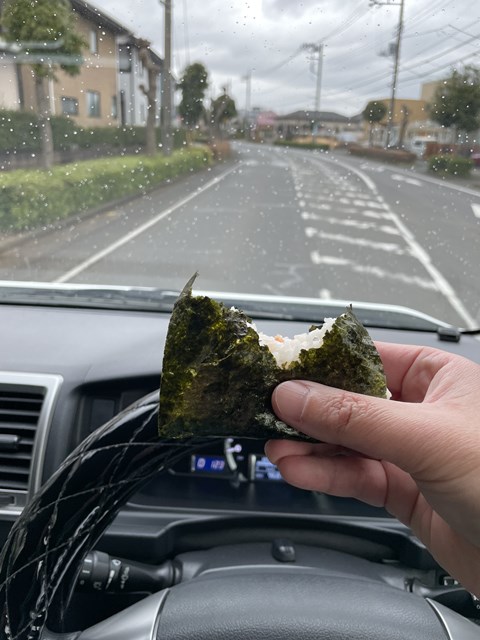 🍙(´~`)モグモグしながら急いで事務所へ戻ってます。。。