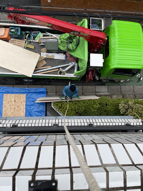 電線が無ければ、ユニックちゃんでピューっとあげちゃうんですけど不可っす。