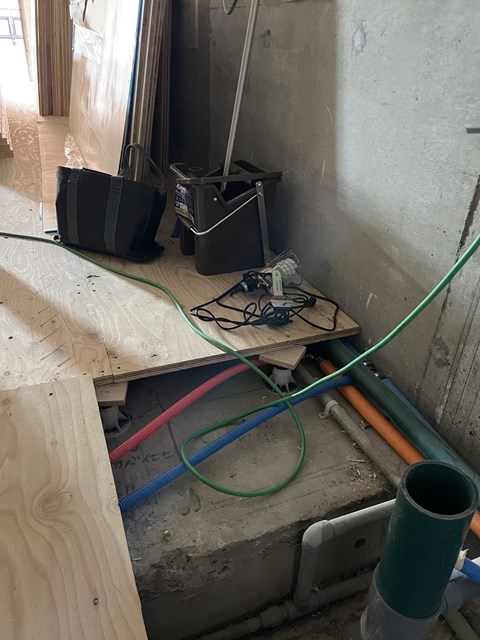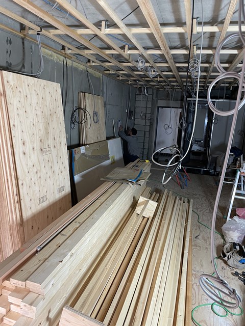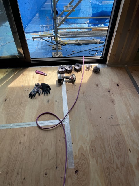 このように床を上げて置床式にし、遮音性を上げて無垢材を張っていきます。因みに、管理会社に申請して受理されることが大前提ですのでご注意を✋