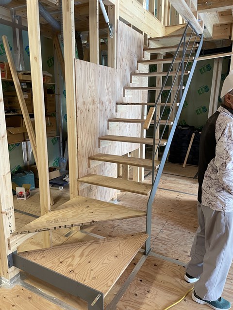 えぇ。ここでもkamiyaのハイドア使います!となると、下地材が3*8で階段で上げれない、、、