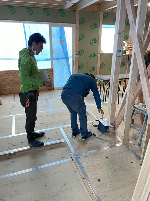 大工Yさんとワタクシーで天井高さなど決めた点に対して鉄骨Yさんと納まりを打ち合わせ中~