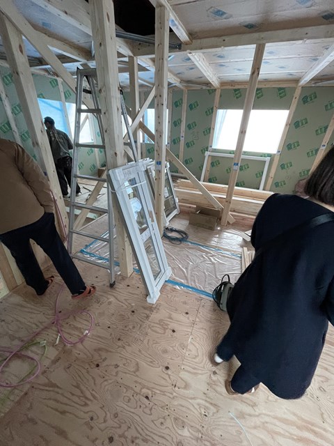 S様ご夫婦、90cm×80cmのトリプルガラスを持ってみて重たさにビックリ!