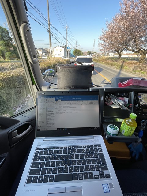 もう助手席でのPC作業も慣れたとです。