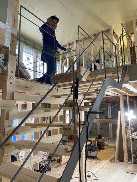 そう!今日は現場で直接溶接して手摺を繋いでいくんですがー