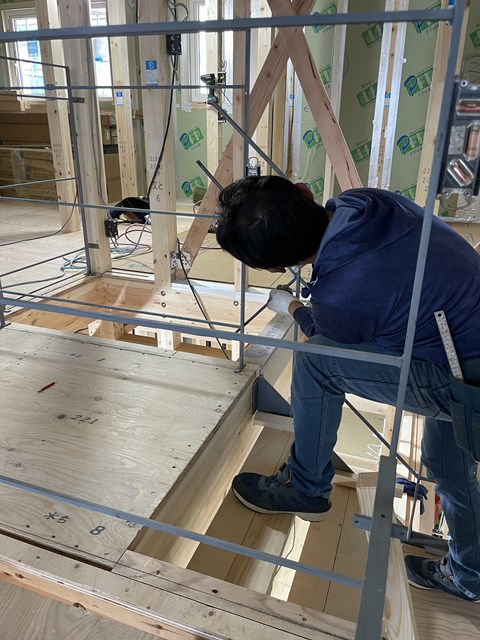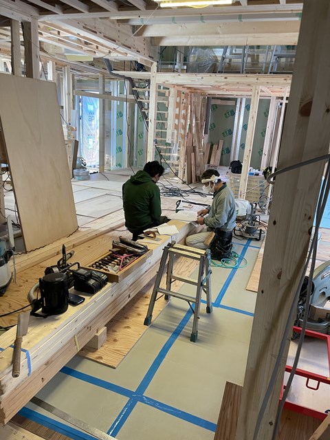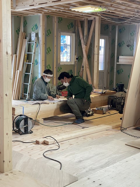 大工さんたちはワタクシたちの笑い声には耳を傾けず、作業に集中!!