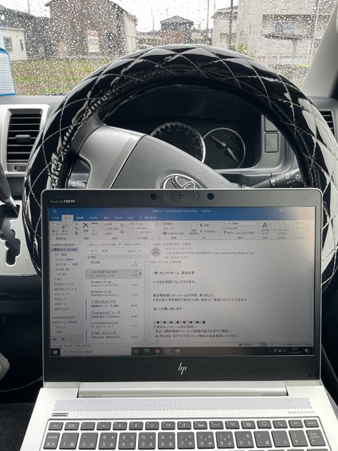 ちょっと早めに着いちゃんなのでー、邪魔にならないところで路駐して