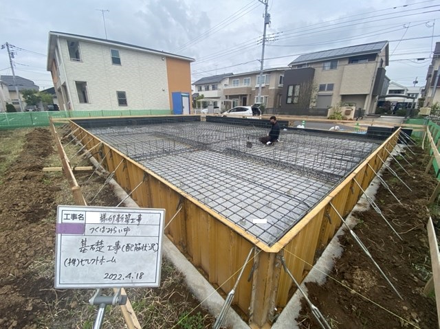 Fさん一人で頑張って配筋組んでおります。頑張れ―――!