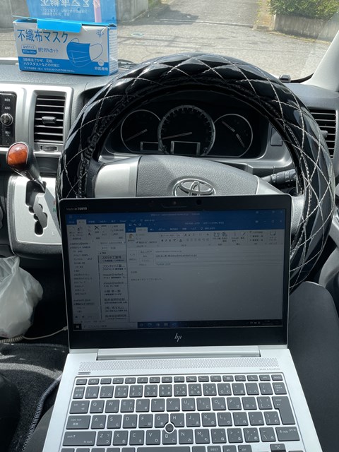 車の中でお仕事しますぅ~。時間無駄にしまーテン😆
