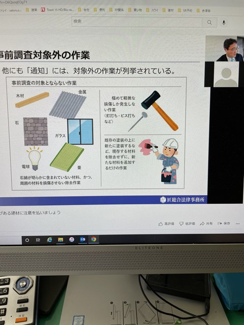 住宅だと、屋根材や石膏ボード、軒天材などが古いと含まれてたりするんだよねー。。。