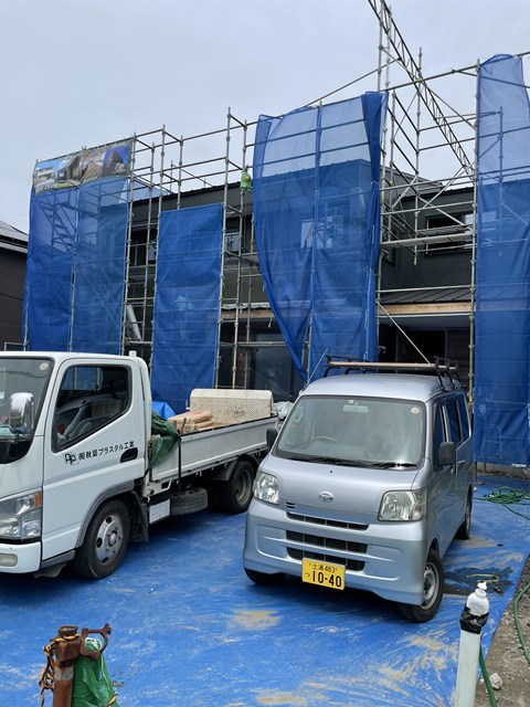 おっとぉ~!T様邸はアクセント壁がモルタルでデザインしているので左官Aさん親子が作業してくれてます!