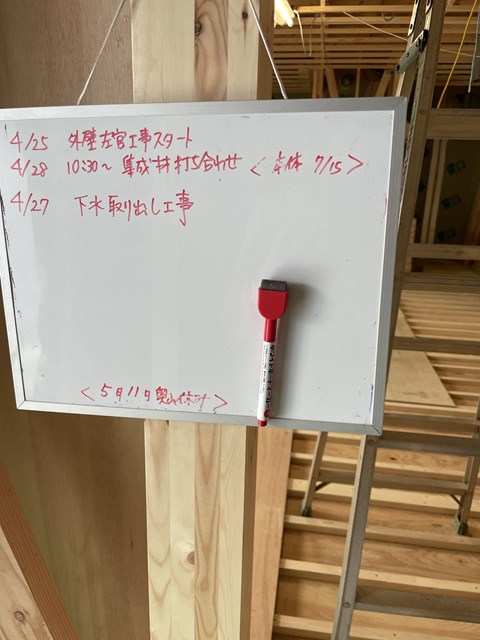 T様邸は木工事後半戦になってきましたので、ホワイトボードはだいーぶスカスカになってきましたがー、、、
